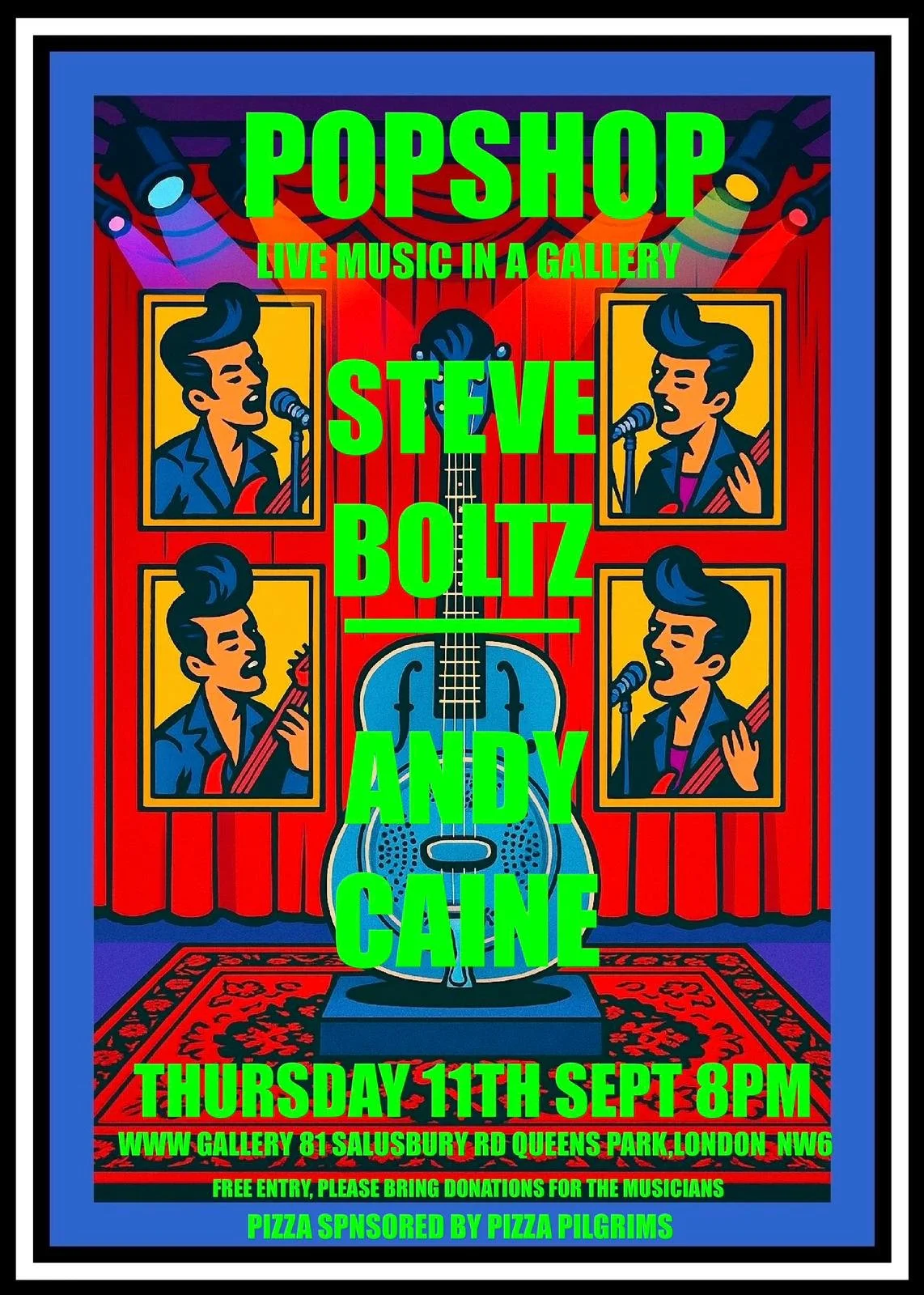 Popshop was created by three music loving friends in the Worldly Wicked and Wise art gallery in the heart of Queens Park. Dave, Lee and Tris. DLT. Thankfully nothing to do with the hairy cornflake! Fed up by the lack of live music venues and live music in the area , they curated and engineered an event that has gradually evolved into nights of beguiling live music performance and artistry. Since June 2023 Popshop (starting on Wednesday nights) has featured some of the areas most talented performers amongst an ever changing background of paintings, photographs and art. There’s been session players, young musicians from the local Institute of contemporary music performance, opera singers, slam poetry, live painting of the nights performers, country jazz and soul bands, singer songwriters and collaborations of all the above.